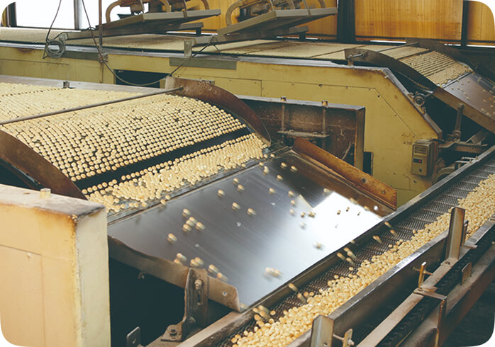 高価だったボーロを誰にでも購入できる価格にするため、バンドオーブンや自動整列機などを他社に先駆けて導入し、ボーロの量産化を推進。これにより、生産能力は1日700kgから2,000kgに急拡大。